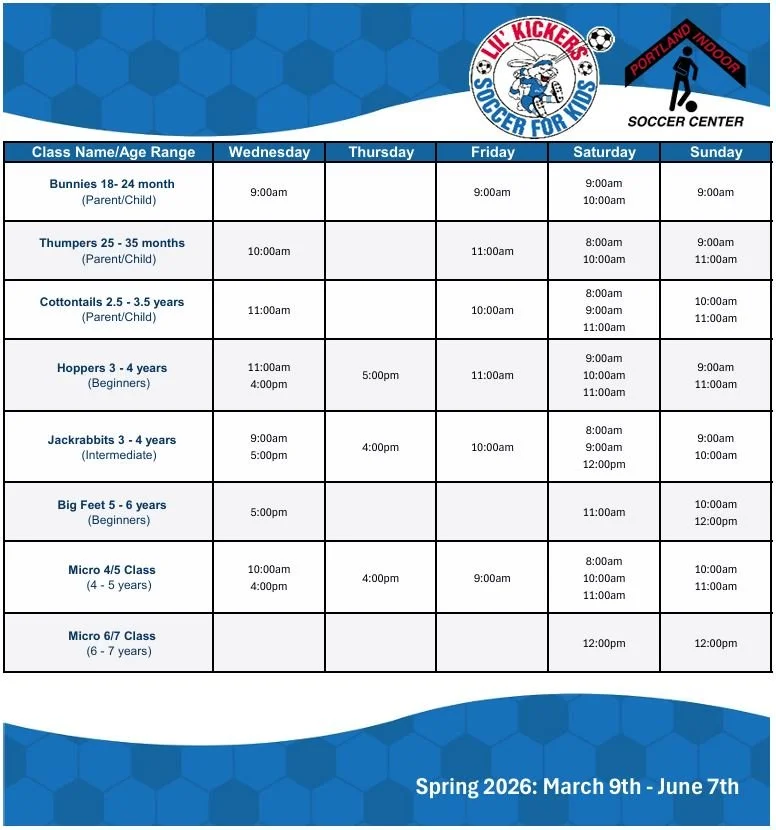 Spring 2026 Season of Lil’ Kickers @ Portland Indoor